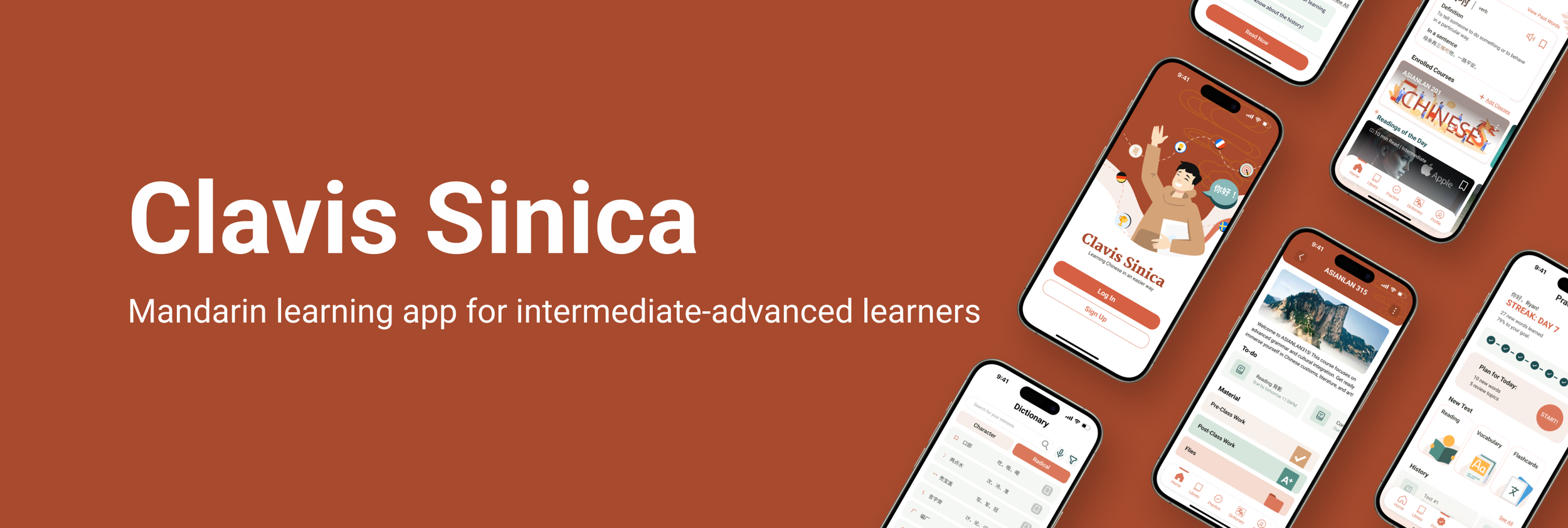 Clavis Sinica is a Chinese reading comprehension app created to aid intermediate - advanced students of Chinese; with features like an in-text dictionary, additional reading materials, and flashcard tools.